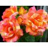 Róża 'Caribia' - należy do róż wielkokwiatowych o dużych kwiatach i charakterystycznym pasiastym wybarwieniu. Weszła do europejskiego asortymentu w latach 70. XX wieku i szybko zyskała popularność dzięki niezwykłemu połączeniu żółtego i czerwonego pigmentu w jednym kwiecie. Krzew rośnie zwarty i wyprostowany, osiąga 0,8-1 m wysokości i około 0,6-0,8 m szerokości. Pędy są mocne, dobrze ulistnione i posiadają umiarkowaną ilość kolców. Liście są ciemnozielone, lekko błyszczące i nadają krzewowi elegancki wygląd przez cały sezon. Kwiaty są zazwyczaj duże, o średnicy około 10-12 cm, pełne i ukształtowane w formie miseczki. Charakterystyczne dla tej odmiany jest wyraźne żółto-czerwone pasiastość lub marmurkowatość, która zmienia się w zależności od warunków oświetleniowych i temperatury - w chłodniejsze dni odcienie są bardziej intensywne. Zapach jest delikatny do średnio intensywnego, słodki i przyjemny, najlepiej wyczuwalny w ciepłe dni. Kwitnienie odbywa się wielokrotnie od czerwca do października, często w wyraźnych falach. Kwiaty pojawiają się pojedynczo na długich, wyprostowanych łodygach, co czyni tę odmianę odpowiednią do cięcia. W kompozycji ogrodowej służy jako efektowna soliter, akcent kolorystyczny w mniejszych grupach lub jako część mieszanych rabat w ciepłych barwach.
