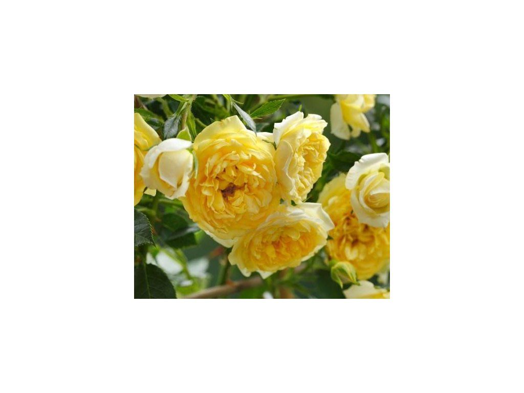 Róża 'Elida Starlet Rose®' - pnąca róża z mnóstwem dużych kiści pełnych drobnych, jaskrawożółtych kwiatów. Pełne kwiaty powtarzają kwitnienie przez całe lato aż do pierwszych mrozów. Osiąga wysokość 150-200 cm i można ją również stosować do uprawy w pojemnikach.