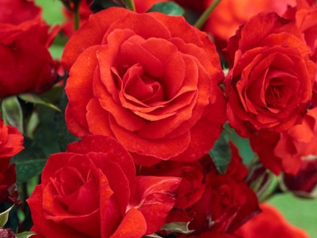 Róża 'Olympisches Feuer® 92' - róża krzaczasta wielokwiatowa, z pełnymi kwiatami w jaskrawo ognistych odcieniach czerwieni. Kwiaty są bardzo dobrze odporne również na deszcz. Wyróżnia się przy sadzeniu na rabatach, ale także w donicach. Osiąga wysokość 50-80 cm i szerokość 35-40 cm.
