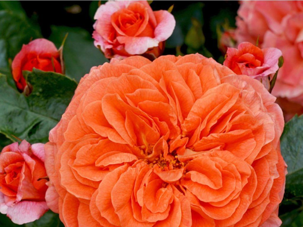 Róża 'Orangerie®' - odmiana wielokwiatowa, osiągająca wysokość około 80 cm. Posiada pełne kwiaty o średnicy do 8 cm, w kolorze ciemnopomarańczowym, przypominającym dojrzałą pomarańczę. Ma piękny zapach. Kwitnie wielokrotnie, od czerwca do października, i jest dobrze odporna na mróz i choroby. Otrzymała nagrodę ADR. Odmiana nadaje się na rabaty, do większych donic lub nasadzeń krzewiastych. Pięknie prezentuje się również jako soliter, w połączeniu z niewymagającymi bylinami lub jako wyjątkowy dodatek do pojemników balkonowych lub tarasowych.
