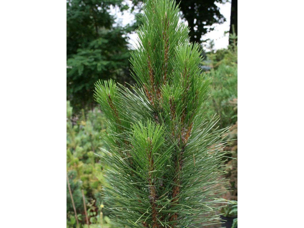 Sosna czarna 'Fastigiata' - wąskokolumnowa odmiana sosny czarnej, ceniona za wyprostowany wzrost i stabilną, zwartą koronę. Gatunek Pinus nigra pochodzi z górskich rejonów południowej i środkowej Europy, gdzie naturalnie rośnie na kamienistych, często wapiennych zboczach i w suchszych lasach. Odmiana 'Fastigiata' zachowuje odporność i żywotność gatunku macierzystego, ale tworzy znacznie węższy pokrój z gałęziami skierowanymi stromo ku górze wzdłuż pnia. W wieku dorosłym osiąga około 6–10 m wysokości i 2–3 m szerokości, przy czym roczne przyrosty wynoszą około 20–30 cm. Korona jest gęsta, regularna i naturalnie utrzymuje kształt bez potrzeby przycinania. Igły wyrastają w pęczkach po dwie, mają 8–12 cm długości, są sztywne, ciemnozielone i lekko błyszczące, o twardej teksturze. Dzięki gęstości ulistnienia drzewo lub krzew wygląda na zwarty przez cały rok. U starszych okazów pojawiają się jajowate do stożkowatych szyszki o długości 5–8 cm, dojrzewające do brązowego koloru. Odmiana znajduje zastosowanie jako soliterowa dominanta w mniejszych ogrodach, jako akcent pionowy w nowoczesnych kompozycjach oraz w nasadzeniach liniowych wzdłuż dróg czy podjazdów. Ze względu na wąską koronę jest dobrą alternatywą dla żywotników lub cyprysów tam, gdzie pożądany jest element zimozielony bez znaczącego rozrastania się na boki.