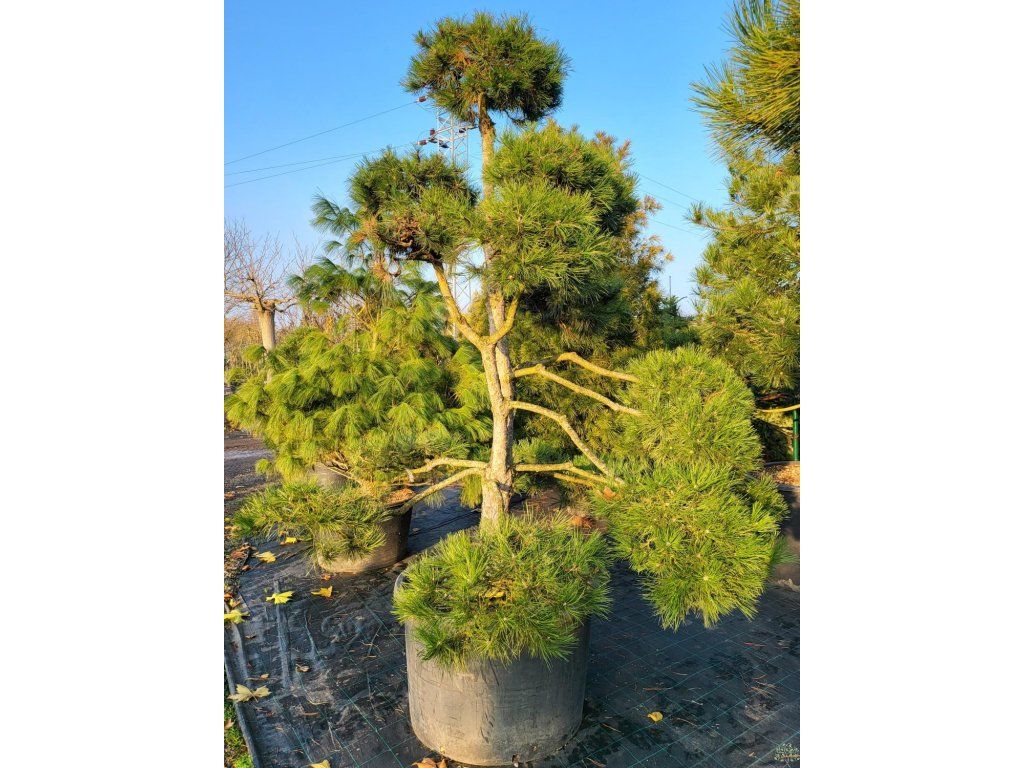 Sosna czarna odm. austriaca <\/strong>- często nazywana sosną austriacką. Jest to wiecznie zielone drzewo iglaste znane ze swojej solidności i odporności na niekorzystne warunki. Należy do rodzaju Pinus i jest naturalnie rozpowszechniona w Europie. Drzewo to ma charakterystyczny kształt i może osiągać wysokość do około 20-25 metrów. Ma stożkowatą lub piramidalną koronę z szerokimi gałęziami, co nadaje mu imponujący i elegancki wygląd. Jego igły są ciemnozielone do intensywnie zielonych, długości około 10-15 cm i ułożone w pęczki po dwa. Są elastyczne i odporne na wiatr i suszę. Zimą mogą na brzegach nabierać lekko złotożółtych odcieni. Szyszki są jasnobrązowe do szarych, dojrzewają w trzecim roku życia. Sosna czarna var. austriaca jest doskonała jako soliter lub element nasadzeń grupowych. Jest znana nie tylko ze swojej potężnej korony, ale także z efektownego pnia, zwłaszcza u bardziej rozrośniętych odmian. Jest mało wymagająca i dlatego stanowi kluczowy element przy tworzeniu zieleni w obszarach nadmorskich, miejskich i przemysłowych. Doskonale komponuje się z jałowcami, janowcami, różami parkowymi, niższymi trawami ozdobnymi i innymi roślinami, co dodaje ogrodowi różnorodności i wartości estetycznej. Sosna czarna var. austriaca jest ogólnie uważana za odporne i atrakcyjne drzewo, które wnosi do otoczenia wartość estetyczną, a jednocześnie wymaga minimalnej pielęgnacji.