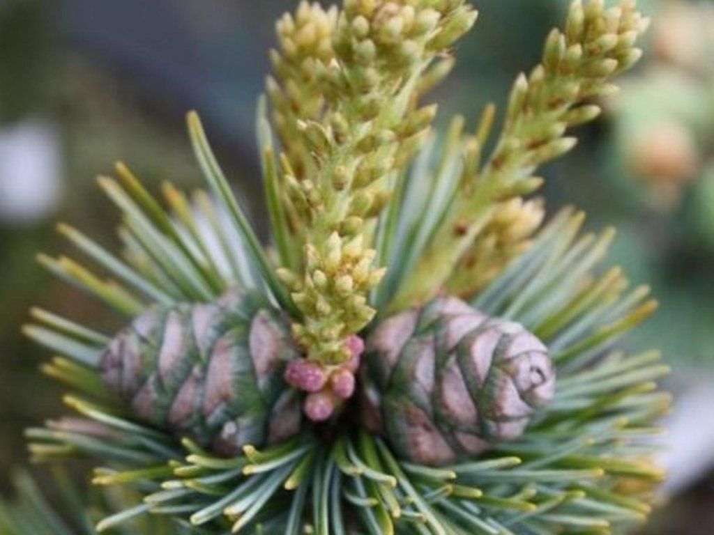 Sosna drobnokwiatowa 'Ryu Jin' - wolno rosnący kultywar o nieregularnym, stożkowatym pokroju. W ciągu dziesięciu lat osiąga wysokość 1,2 m. Igły są wąskie, lekko pokręcone, w kolorze niebiesko-zielonym z lekko żółtymi końcówkami. Będzie świetnie się rozwijać w każdej lekko wilgotnej glebie, na pełnym słońcu.