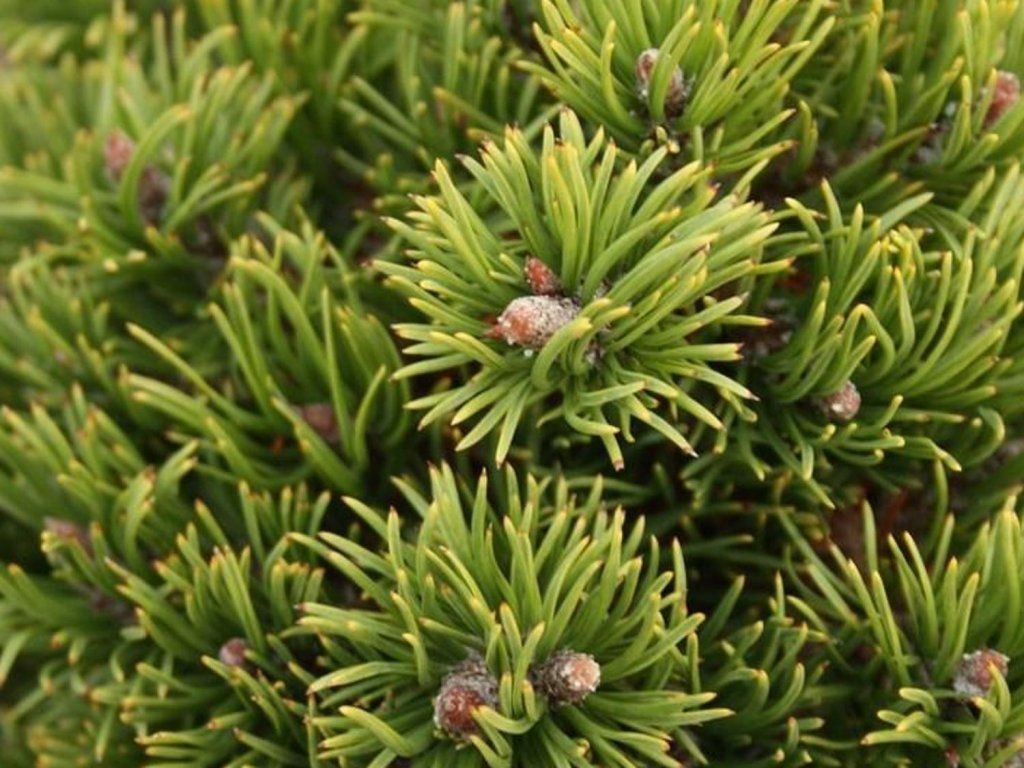 Sosna gęstokwiatowa 'Edsal Wood Compact' <\/strong>- gatunek pochodzący z Azji Wschodniej, naturalnie występujący w Japonii, Korei i północno-wschodnich Chinach, gdzie rośnie na stanowiskach słonecznych, na glebach lekkich, często kamienistych i kwaśnych. Odmiana 'Edsal Wood Compact' nosi imię amerykańskiego szkółkarza Edsala Wooda i należy do miniaturowych sosen uprawianych ze względu na bardzo gęste igliwie i niski, poduszkowaty pokrój. Wzrost jest początkowo lekko wzniesiony, stopniowo rozszerza się na boki, tworząc szeroki „bochenek”. Po 10 latach uprawy osiąga około 35 cm wysokości i około 50 cm szerokości, roczny przyrost wynosi około 2–3 cm. Igły są średniozielone, zebrane w pęczki po dwie, bardzo gęsto rozmieszczone na gałęziach, dzięki czemu powierzchnia krzewu wydaje się puszysta. Najbardziej wyrazistym detalem są czerwono-brązowe pąki, które zimą i wczesną wiosną kontrastują z zielenią igieł i podkreślają rytm rozgałęzień. Odmiana sprawdza się na skalniakach, wrzosowiskach, w nowoczesnych nasadzeniach żwirowych oraz w pojemnikach, gdzie zapewnia całoroczny, zimozielony element i delikatną teksturę. Kombinacje dobrze komponują się z wrzosami, sucholubnymi bylinami, niskimi piwoniami i trawami ozdobnymi, które pozwalają wyeksponować kształt. Wiosną, w kwietniu do maja, pojawiają się drobne szyszeczki pyłkowe, niepozorne, ale potwierdzające witalność.