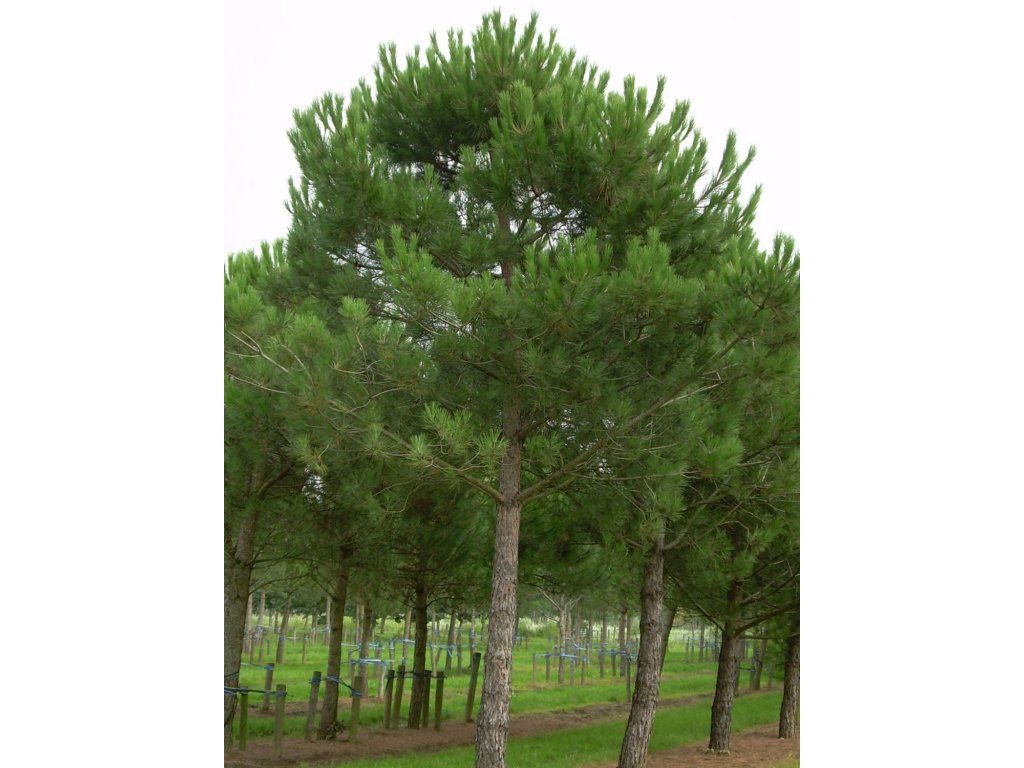 Sosny pinii - pochodzi z basenu Morza Śródziemnego, gdzie jest typowym drzewem dla obszarów przybrzeżnych, suchych zboczy i piaszczystych gleb. W swoim naturalnym środowisku osiąga 20–25 m, w Europie Środkowej zazwyczaj 6–12 m wysokości i 4–8 m szerokości. We wczesnym wieku ma pokrój stożkowaty, z wiekiem tworzy charakterystyczną koronę w kształcie parasola z poziomo rozłożonymi gałęziami. Pień pokryty jest grubą, czerwono-brązową, spękaną korą. Igły wyrastają w pęczkach po dwie, mają 10–20 cm długości, są miększe niż u większości sosen i intensywnie zielone. Szyszki są prawie kuliste, mają 8–15 cm długości, dojrzewają trzeciego roku po zapyleniu. Zawierają duże, bezskrzydłe nasiona znane jako orzeszki pinii, bogate w tłuszcze, białko i minerały. W kuchni wykorzystuje się je do sałatek, pesto lub wypieków. Drzewo jest wiatropylne, szyszki męskie i żeńskie rozwijają się na tej samej roślinie.