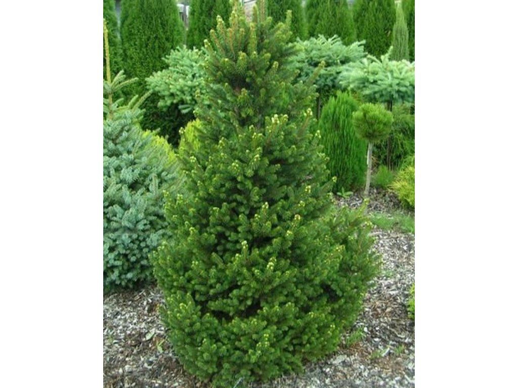 Świerk pospolity 'Will's Zwerg' - ta ciekawa roślina iglasta dorasta do 1,5-3 m wysokości i 1-2 m szerokości. Wzrost jest powolny, zwarty i gęsty. Igły są krótkie, sztywne i mają intensywnie zielony kolor. Nowe przyrosty świecą intensywnie pomarańczowo-brązowym kolorem. Ogólny kształt rośliny jest stożkowaty, podstawa jest średnio szeroka. Jest dobrze odporny na mróz. Idealny na skalniaki, do pojemników, pięknie prezentuje się również w połączeniu z innymi, niższymi iglakami i ozdobnymi krzewinkami.