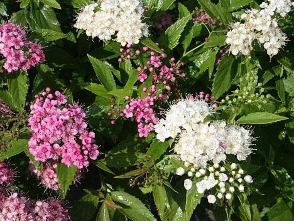 Tawuła japońska 'Shirobana' - niski krzew o wysokości do 80 cm, interesujący ze względu na swoje kwiatostany, które łączą biały i różowy kolor. Kwitnie od czerwca do sierpnia, przycinanie po kwitnieniu sprzyja ponownemu kwitnieniu. Na słoneczne stanowiska.