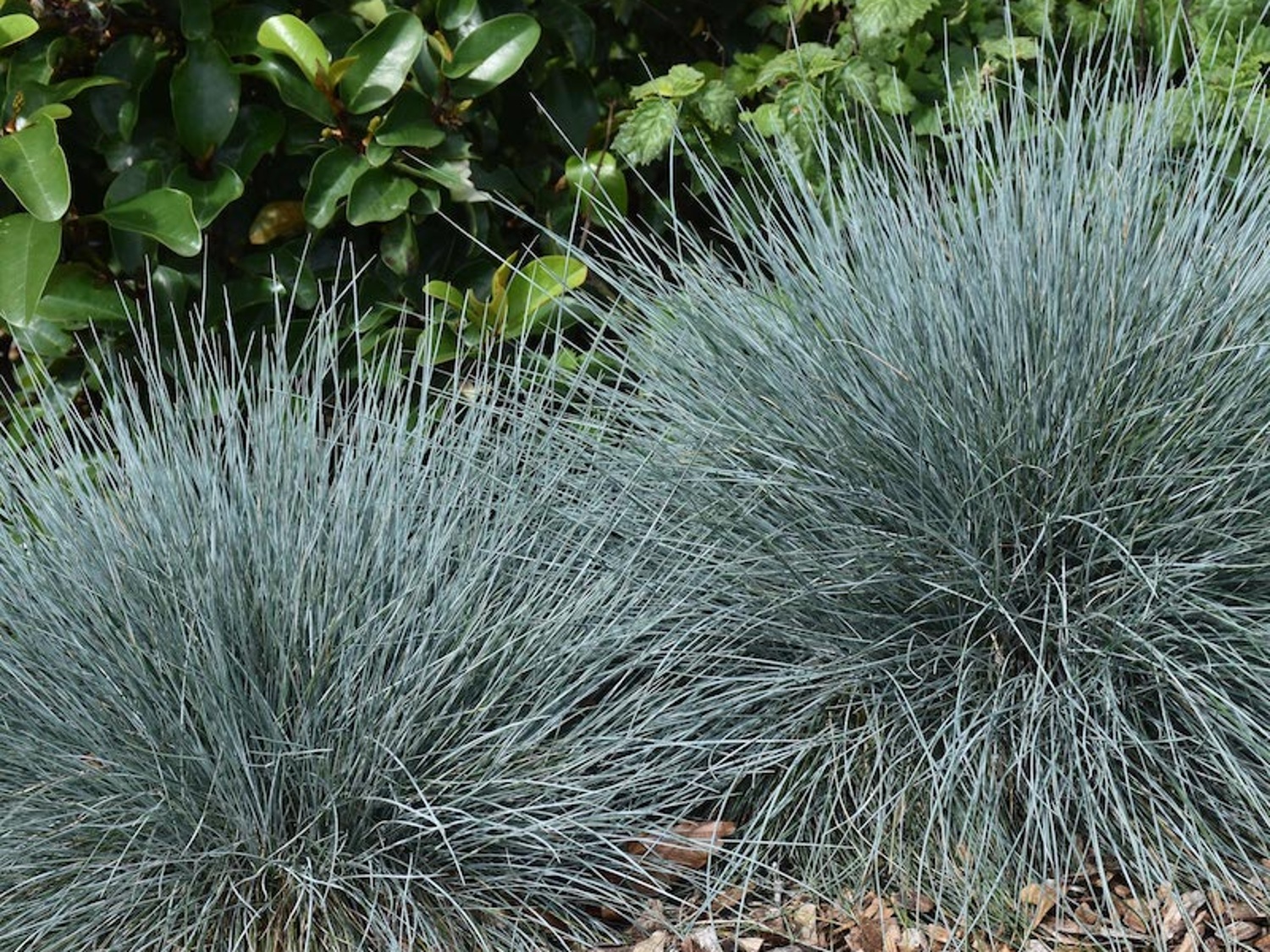 - Niskie akcenty: Kostrzewa sina (Festuca glauca) tworzy stalowoniebieskie kępy, idealnie kontrastujące z ciemnym mulczem lub kamieniem.