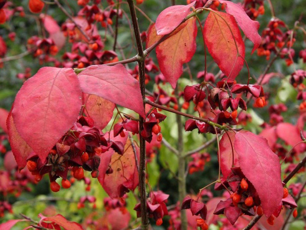 Trzmielina płaska - tworzy zrzysty krzew lub małe drzewo o luźno rozłożonej koronie, w warunkach Republiki Czeskiej najczęściej 2,5–3,5 m wysokości i 2–3 m szerokości, po około 10 latach około 2,5 m. Liście są odwrotniejajowate do szerokojajowatych, zazwyczaj o długości 10–12 cm, latem soczysto zielone, jesienią przechodzą w odcienie brązowe, a następnie czerwone. W maju do czerwca pojawiają się drobne, zielonożółte kwiaty w luźnych kwiatostanach, niepozorne na pierwszy rzut oka, ale ważne dla zawiązania owoców. Od września do października dojrzewają okazałe, czteroklapowe torebki w kolorze fuksji, po otwarciu z pomarańczowymi nasionami w osnówkach, które mogą pozostawać na gałęziach nawet do listopada. Owoce są dekoracyjne, niejadalne dla człowieka i mogą powodować problemy trawienne po spożyciu, a jednocześnie są atrakcyjne dla ptaków. Pędy wyrastają z uderzająco spiczastych, ciemnowiśniowo-brązowych pąków, które są dobrze widoczne nawet zimą. System korzeniowy jest raczej płytki i rozłożony, dlatego polecana jest ściółka, która utrzymuje równomierną wilgotność i ogranicza przegrzewanie się gleby. W kompozycji wyróżnia się na tle ciemnego tła iglaków, obok traw ozdobnych i w naturalnych grupach krzewów, gdzie jesienna barwa działa jak ciepłe światło wśród zieleni.