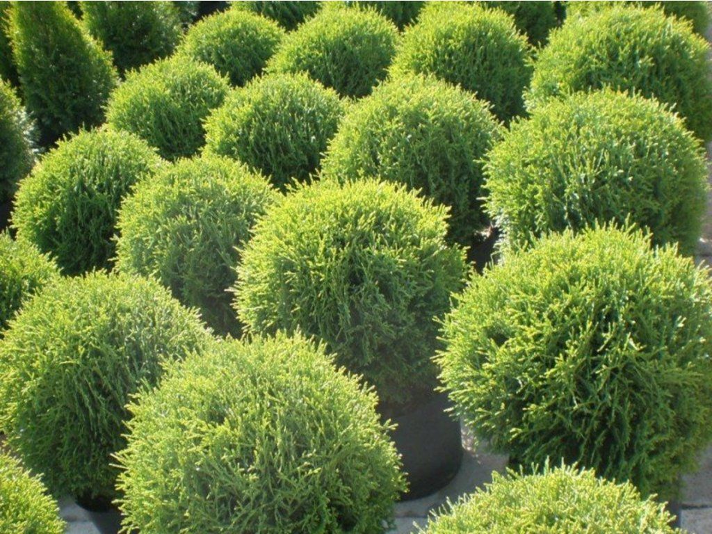 Tuja zachodnia 'Tiny Tim' - karłowa, zimozielona odmiana o bardzo powolnym wzroście i gęstym, zwartym pokroju, która zachowuje regularny kulisty pokrój bez potrzeby formowania. Igły są delikatne, intensywnie zielone, zimą przebarwiają się na odcienie brązu, co nadaje roślinie wyrazistą sezonową zmienność. W wieku dorosłym osiąga około 40 do 80 cm wysokości i podobnie na szerokość, co predysponuje ją do wykorzystania również w ogrodach o ograniczonej przestrzeni. Dzięki kompaktowym rozmiarom i atrakcyjnemu ubarwieniu jest idealna na rabaty skalne, do mniejszych ogrodów, na balkony i tarasy, do pojemników oraz jako roślina soliterowa. Ze względu na gęsty pokrój, dobrze sprawdza się również w formie niskich żywopłotów lub nasadzeń grupowych z innymi niskimi drzewami i bylinami. Odmiana jest wysoce mrozoodporna i odporna na środkowoeuropejskie warunki zimowe, co zapewnia stabilny wygląd nawet w chłodniejszych rejonach.